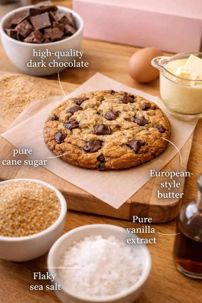 Crumbl uses high-quality butter, real cream cheese in their frostings, genuine chocolate chunks rather than chips, and actual fruit flavoring rather than artificial substitutes. This is not marketing language — it is something fans notice and comment on consistently. The Strawberry Cupcake cookie tastes like real strawberries. The Semi Sweet Chocolate Chunk cookie uses genuine semi-sweet chocolate with a sea salt finish. These ingredient choices cost more, and they show up in the final product.